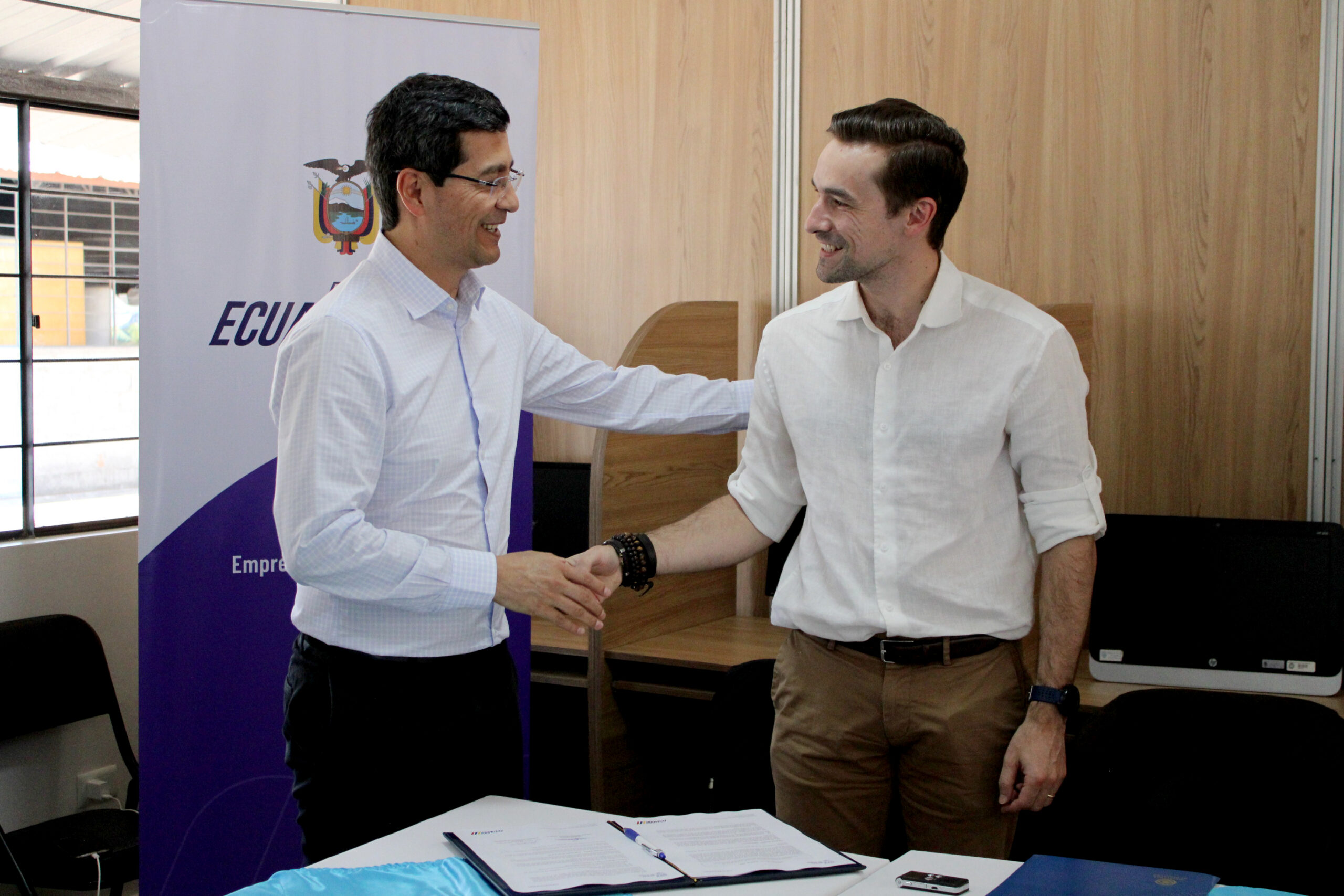 Posteriormente, el gerente General de la Enami EP, Emmanuel Delaune y el prefecto de Imbabura, Richard Calderón, firmaron un contrato de comodato para uso de maquinaria de propiedad de la empresa estatal con el fin “de ampliar el número de beneficiarios que actualmente son atendidos en las zonas de influencia de los proyectos mineros cercanos a las parroquias de García Moreno y Peñaherrera”.