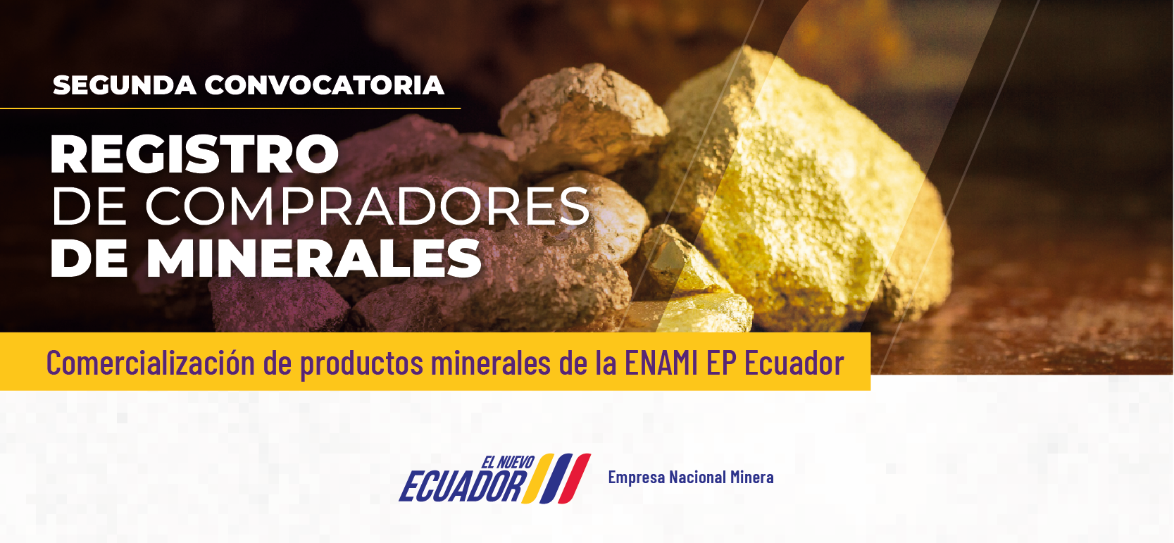 En virtud de lo expuesto, se convoca a las personas naturales o jurídicas, nacionales o extranjeras, que cuenten con Licencia de Comercialización vigente, emitida por el ente rector y debidamente inscrita en el Registro Minero a cargo de la Agencia de Regulación y Control Minero (ARCOM), a formar parte del Registro de Compradores de la ENAMI EP, con el propósito de realizar transacciones de compra y venta de minerales.